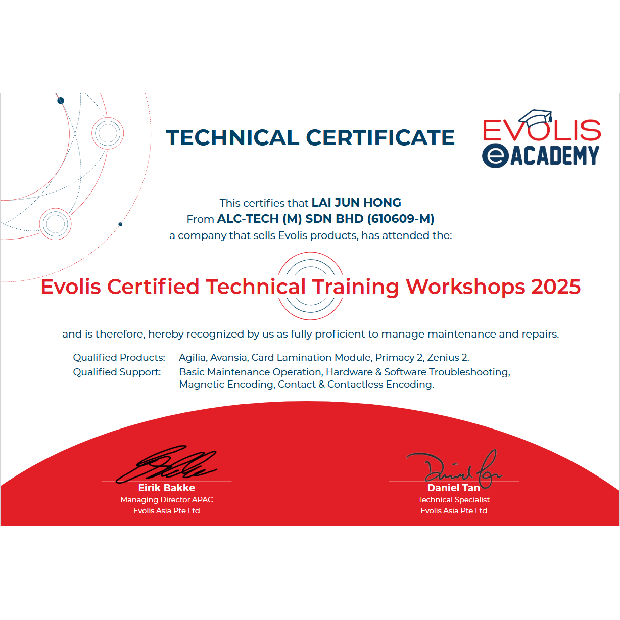 14/Nov/2025   Congratulations to Our Newly Certified Evolis Technical Specialist! .....