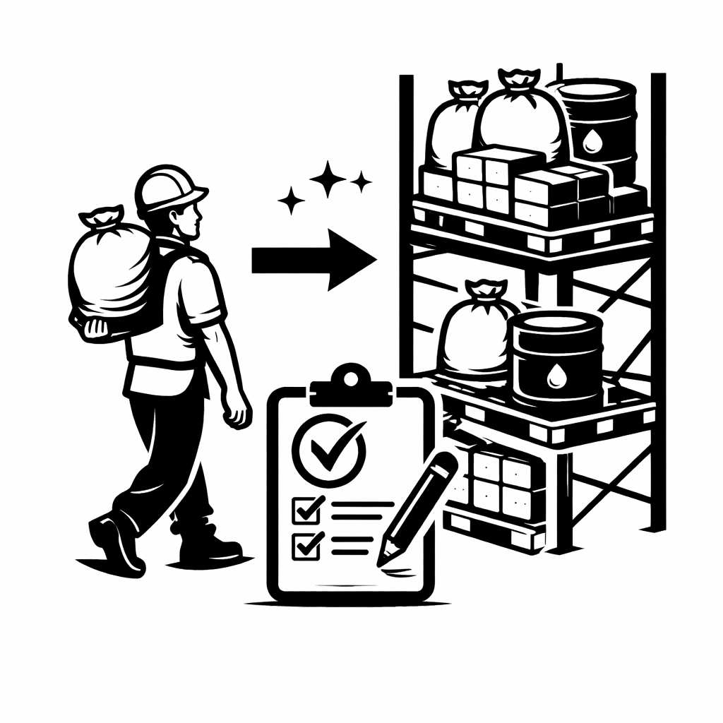 the process of receiving materials and systematically storing them