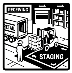 Efficient staging organizes received goods for accurate, timely stock processing.