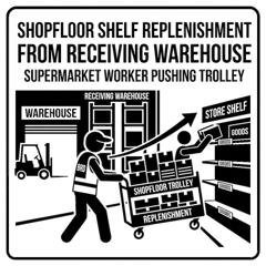 Efficient movement of products from receiving warehouse to shopfloor shelves.
