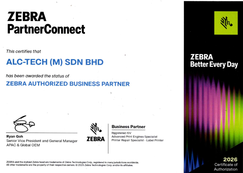We are proud to share an exciting milestone for ALC-TECH (M) SDN BHD. ALC-TECH has officially been awarded the status of Zebra Authorized Business Partner under the Zebra PartnerConnect Program for 2026.